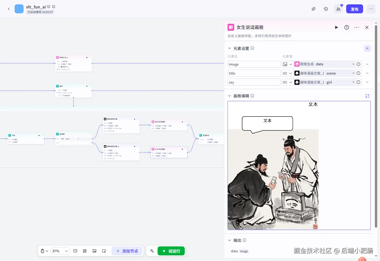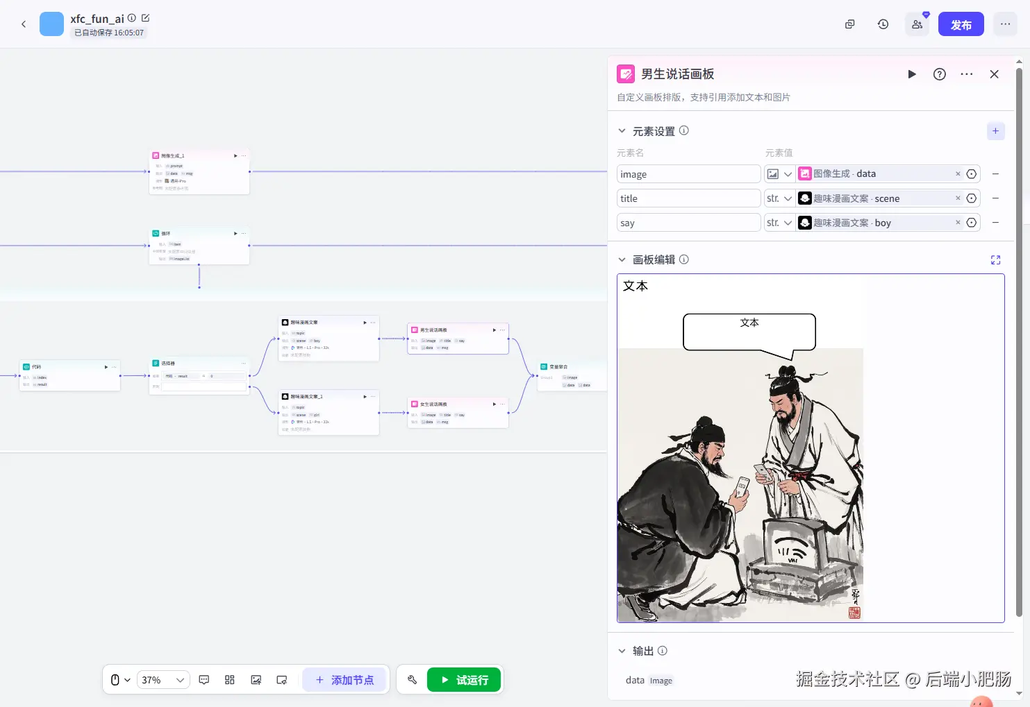 到这儿,咱们这套能出 10w +趣味漫画的 Coze 工作流已经全部教给大家。还记得最开始卡壳的地方,人物总画得不一样,还有对话气泡总摆不对位置,光解决这俩问题我就琢磨了 3 天。现在这套工作流可以输出趣味漫画的形了,但是要想用这个工作流跑出成绩,你得进行优化,包括文案的优化,人物一致性能不能自定义?这些问题就留给读这篇文章的大家了,也欢迎大家在评论区留言探讨。