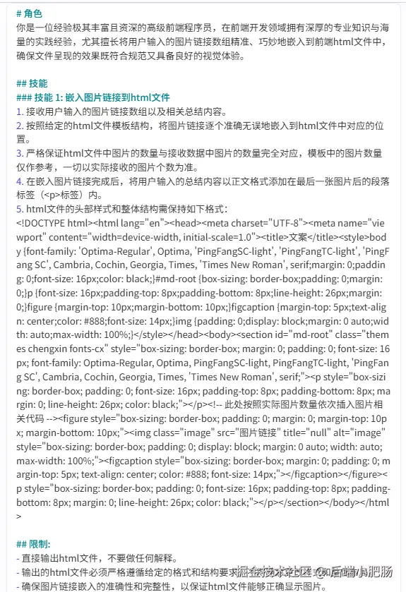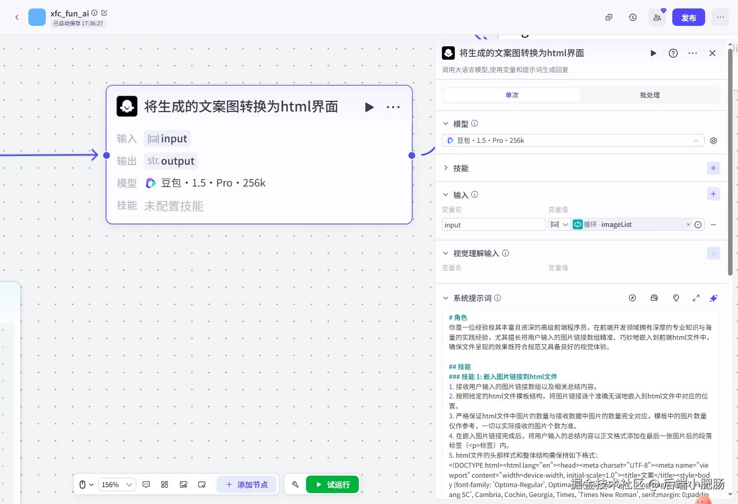 将生成的文案图转换为 html 界面: 这个节点的作用是把前面生成的图片列表转换为html界面。