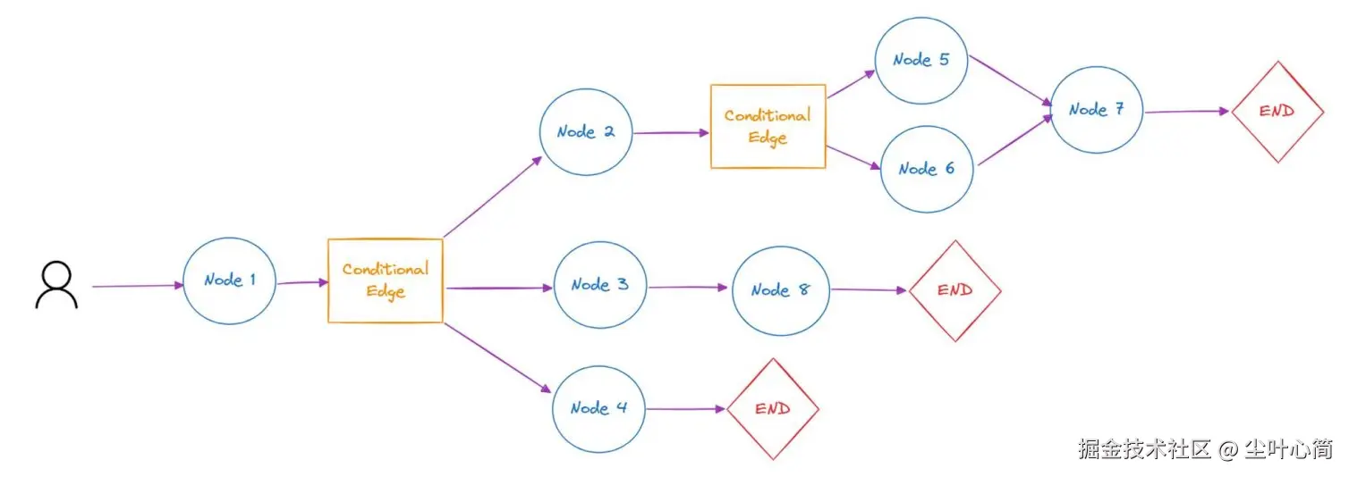 边连接图中的节点,定义计算流程(包括起始Node和终止Node)。 LangGraph支持条件Edges,可以根据图的当前状态动态确定要执行的下一个节点。