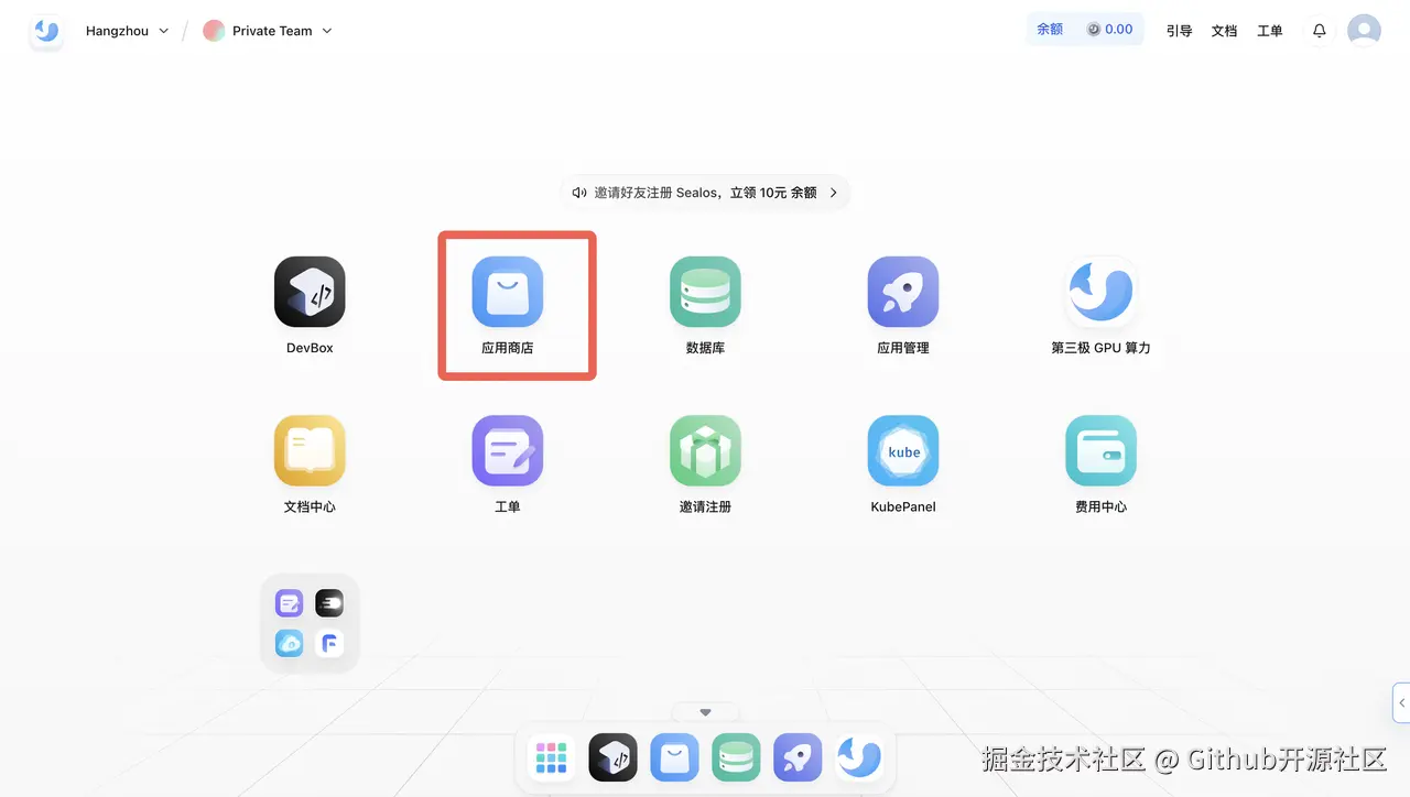 第一步:打开 Sealos 应用商店