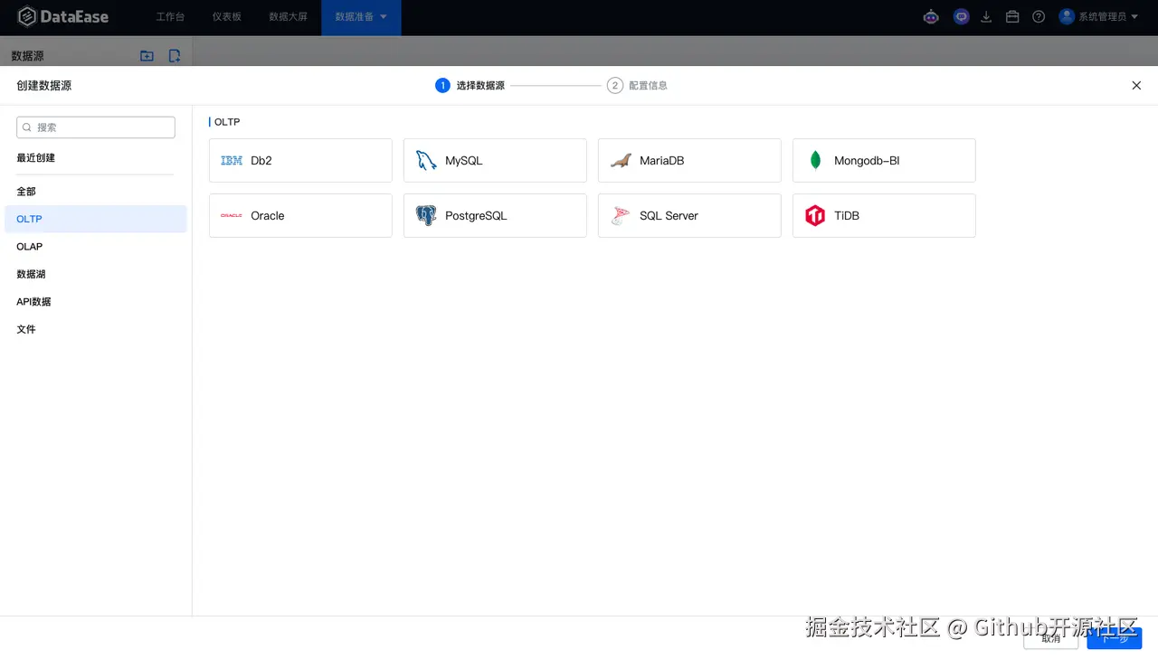 - 连接数据源: 在 DataEase 界面,点击左侧的 数据源,选择你想要连接的数据库或文件。