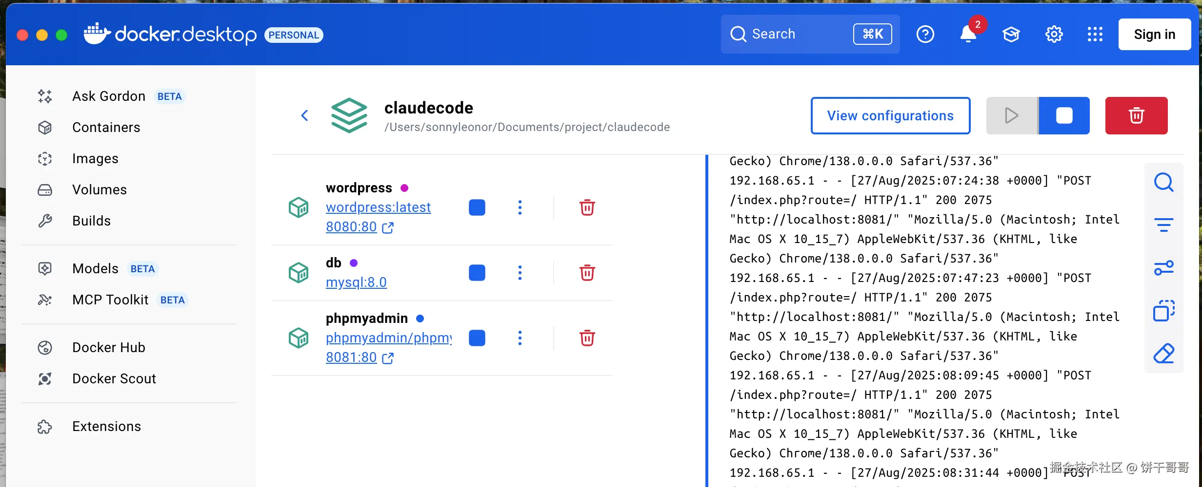 WordPress 都在 docker 里运行的好好的,怎么就没接上呢
