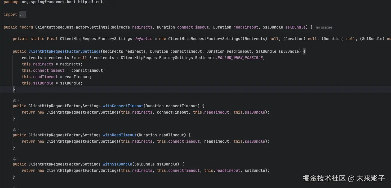 也就是说我们只需要新增一个 ClientHttpRequestFactorySettings 的 Bean 类即可