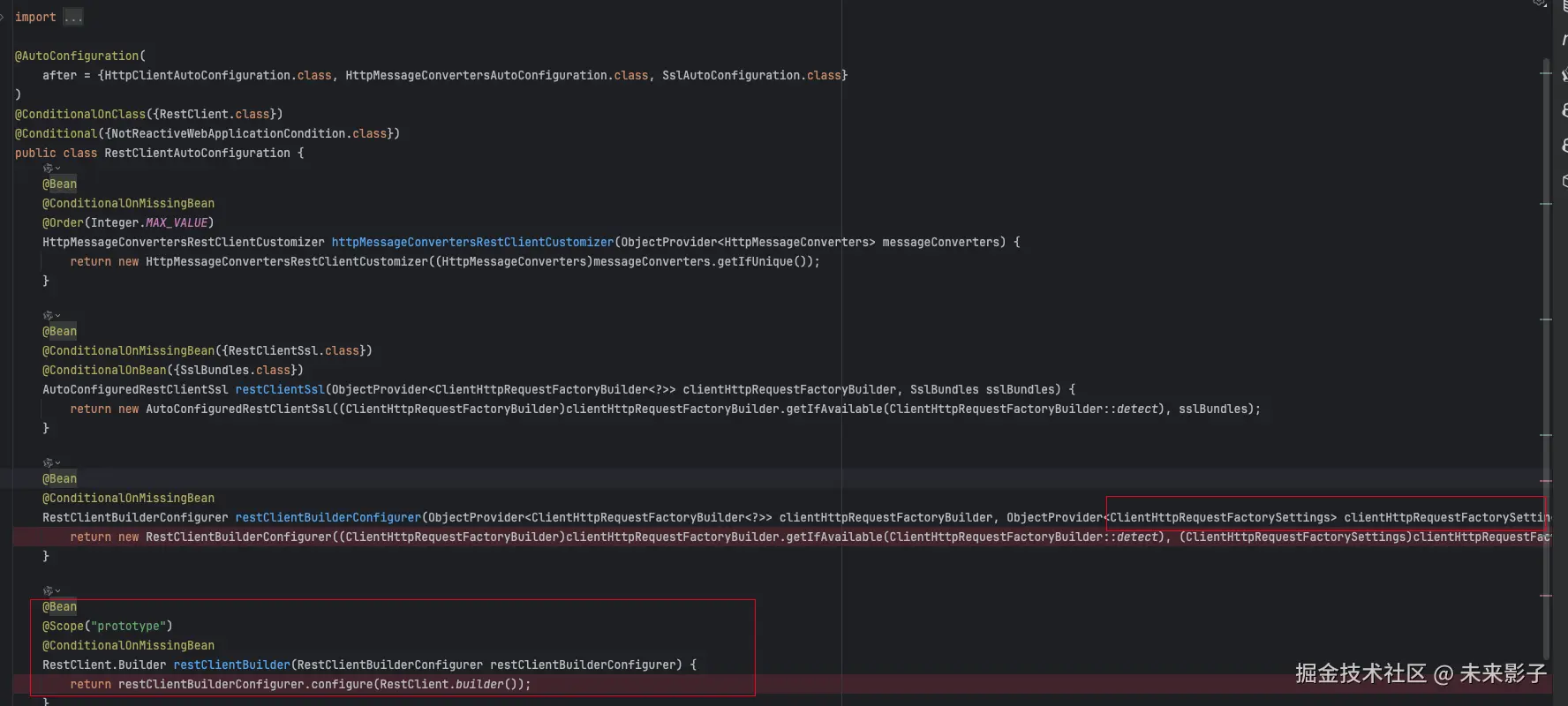 再往上溯源 RestClientAutoConfiguration 实际提供 RestClient.Builder,在这里通过 restClientBuilderConfigurer 方法对 RestClient.Builder 进行配置