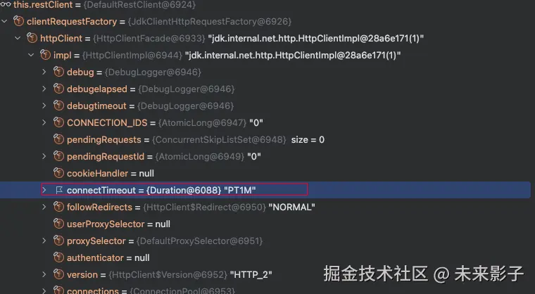 修改之后的 readTimeout、connectTimeout 都变为我们设置 1 分钟了
