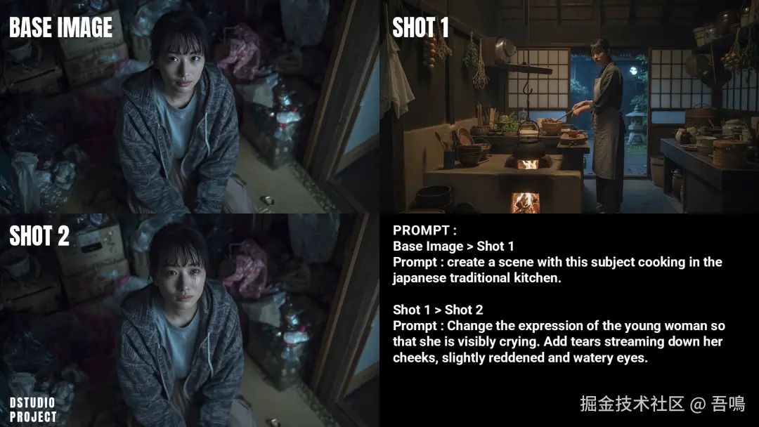 人物一致性的处理效果也是很好,如果你丢个它两张人像照片,使用提示词描述这两张照片的人物分别在不同的场景下做不一样的事情,它产出的不同场景下的人物是与原照片中的人物非常的吻合的,不会像其他的图像处理模型生成的不同场景中的人物有着天壤之别。