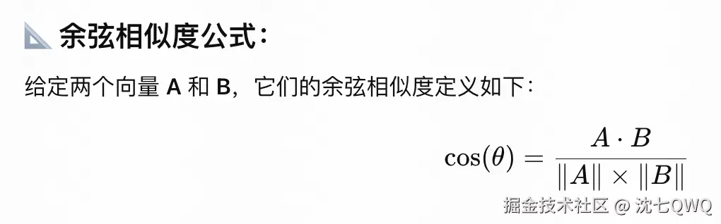 cos_sim(A, B) ≈ 0.999 → 非常相似cos_sim(A, C) ≈ -0.2 → 完全不同