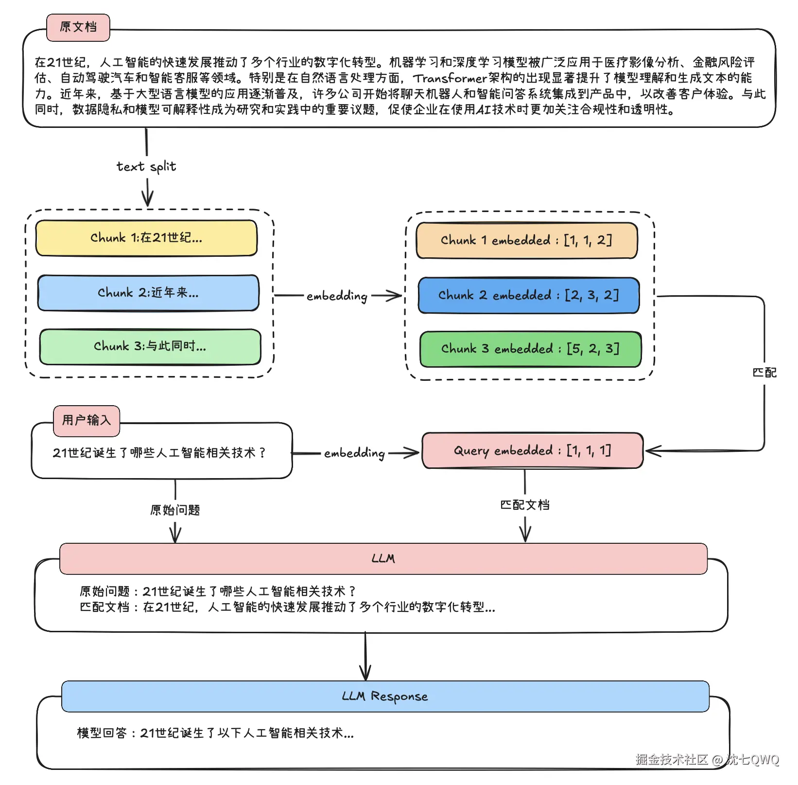 - 检索到的这些相关文本块会与用户的原始查询一起,被整合到一个结构化的 Prompt 中 。