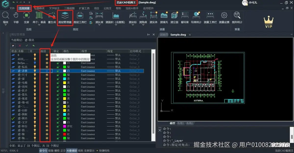 功能:冻结或解冻图层,优化图形处理性能。