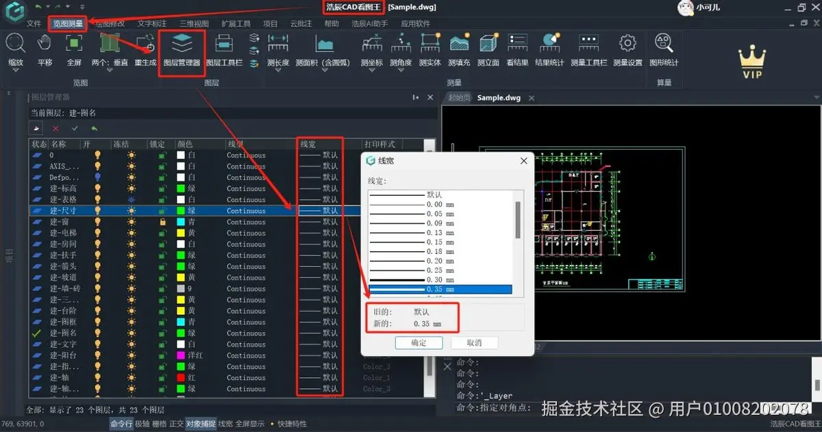 功能:设置图层的线宽,使图形更加清晰。