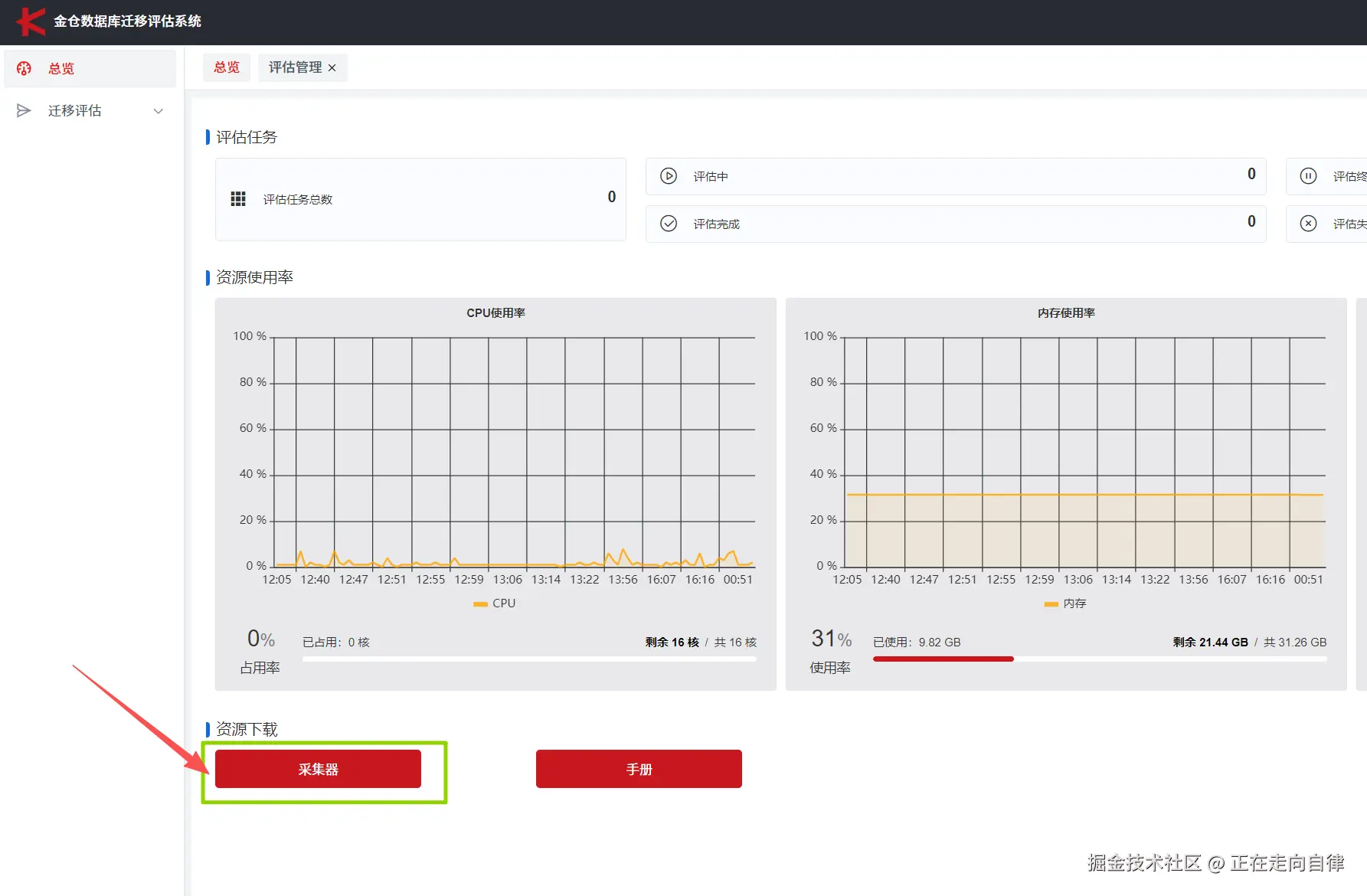 - ****在评估系统的首页,找到底部的「采集器」板块,即可下载轻量级采集器,如下图所示: