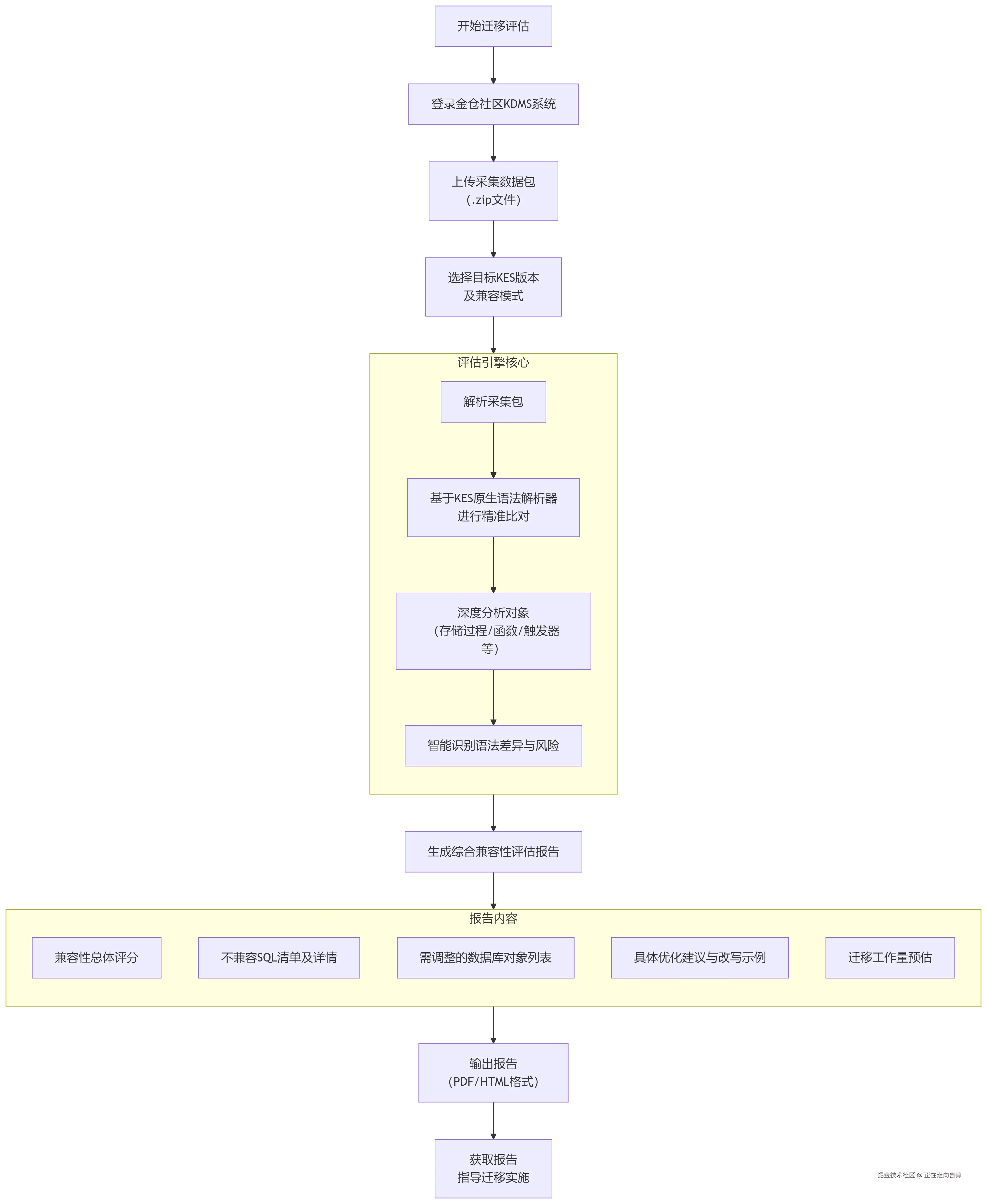 - 评估引擎:与 KES 共用同一套解析器的核心模块,对存储过程、触发器、函数进行精准兼容性打分。