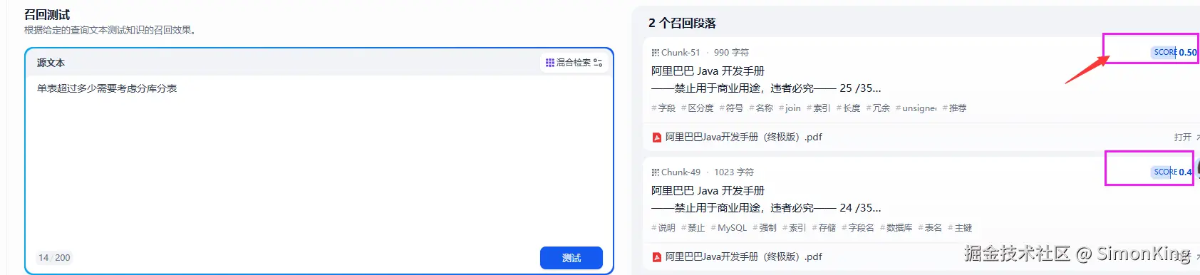 从结果来看,也是通过分段来召回的。回答的准确度取决分段的颗粒度。最优分段中并没有想要的结果。所以效果并不理想。