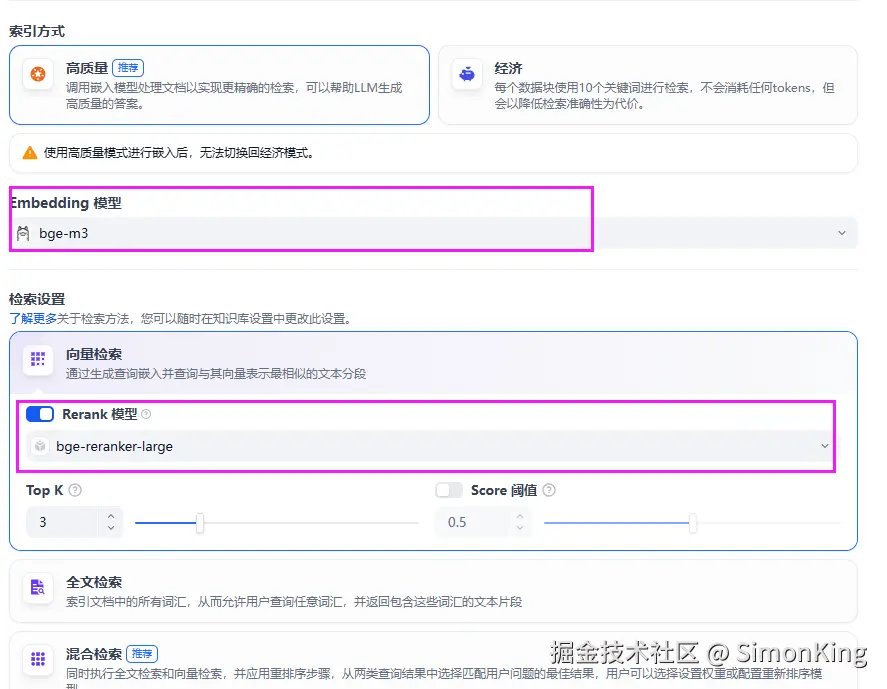 知识库里面非常重要的就是文本内容向量化的处理,使用不同的向量化模型对于检索的结果会有直接影响。因为在测试中不同的软件内置的模型不一样,对输出结果有一定的影响。