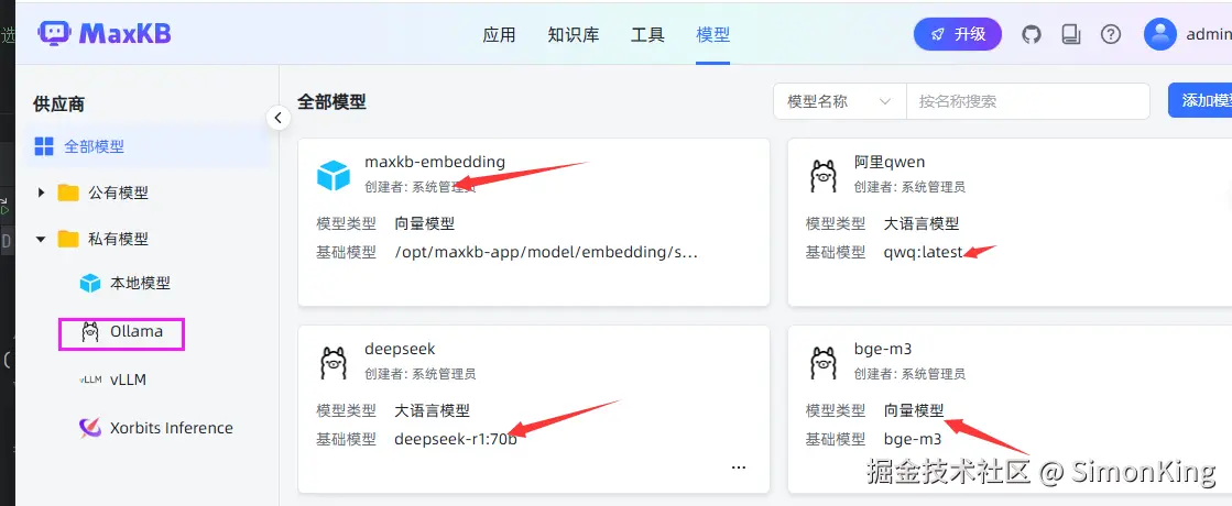 MaxKB内置了向量模型shibing624/text2vec-base-chinese,我们需要配置自己带模型。
