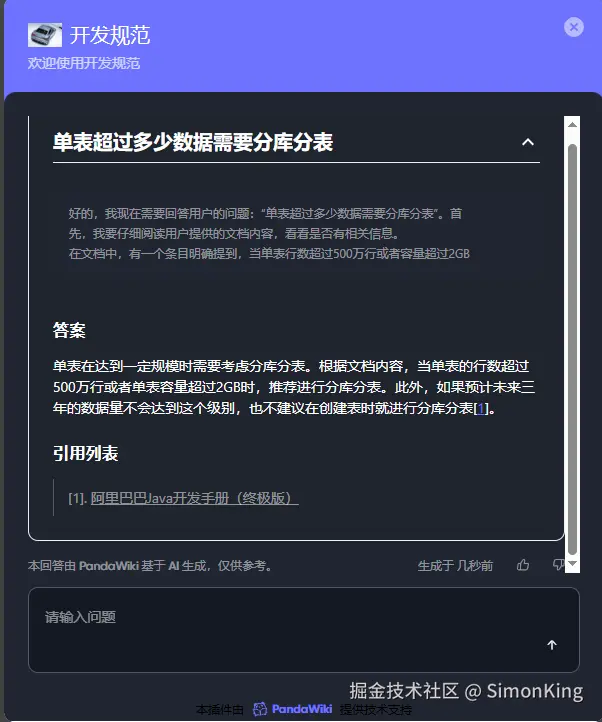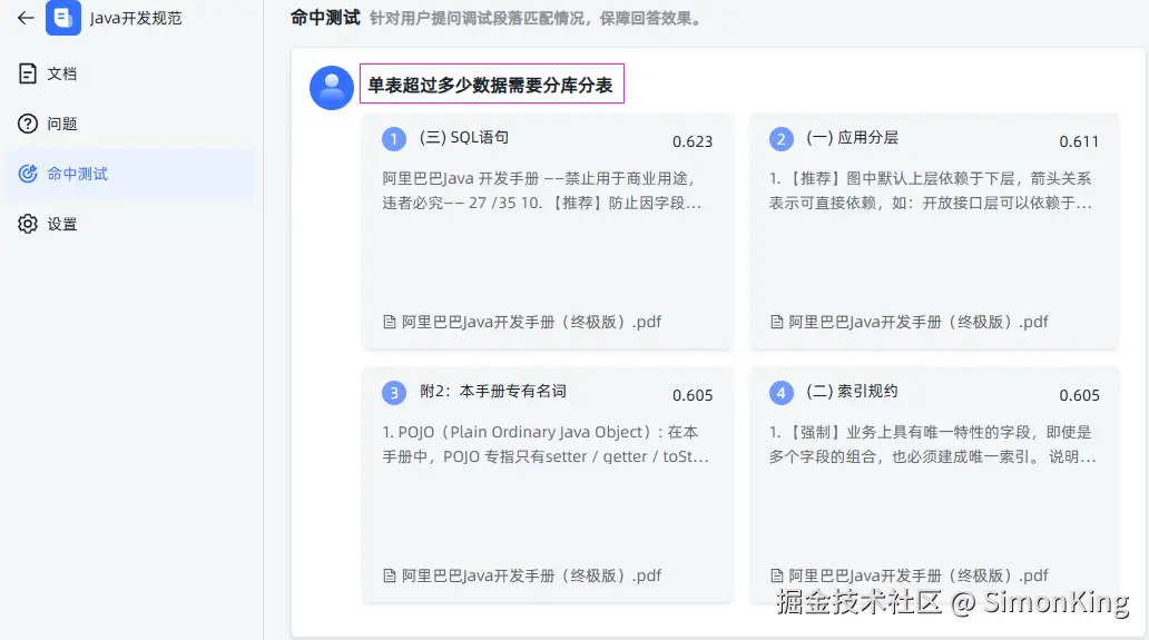 为了测试三款软件搭建知识库的效果,小编打算使用《阿里巴巴Java开发手册》作为外挂知识库,并通过问答的方式,检索的结果怎么样?