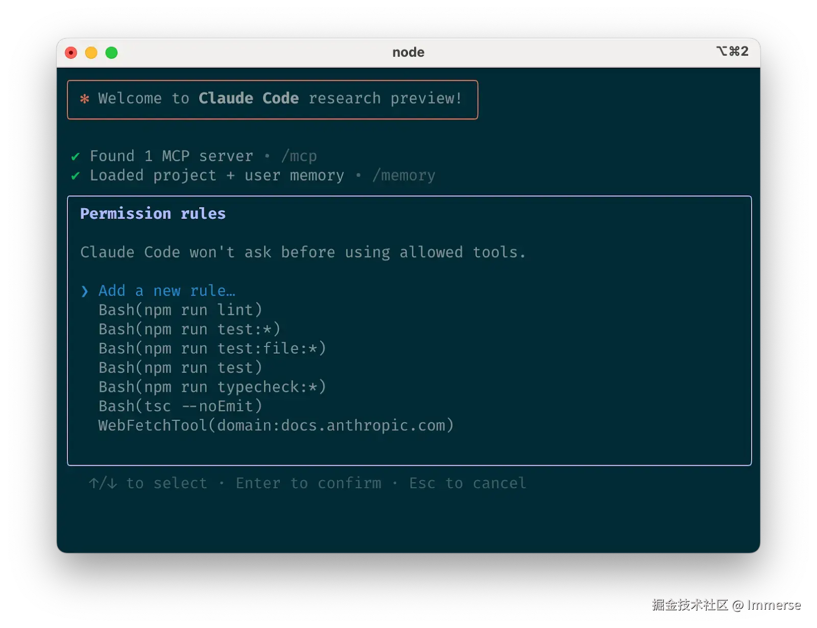 /permissions命令来添加或删除允许列表中的工具。例如,您可以添加Edit来始终允许文件编辑,Bash(git commit:*)来允许 git 提交,或者mcp__puppeteer__puppeteer_navigate来允许使用 Puppeteer MCP 服务器进行导航。 - 手动编辑您的