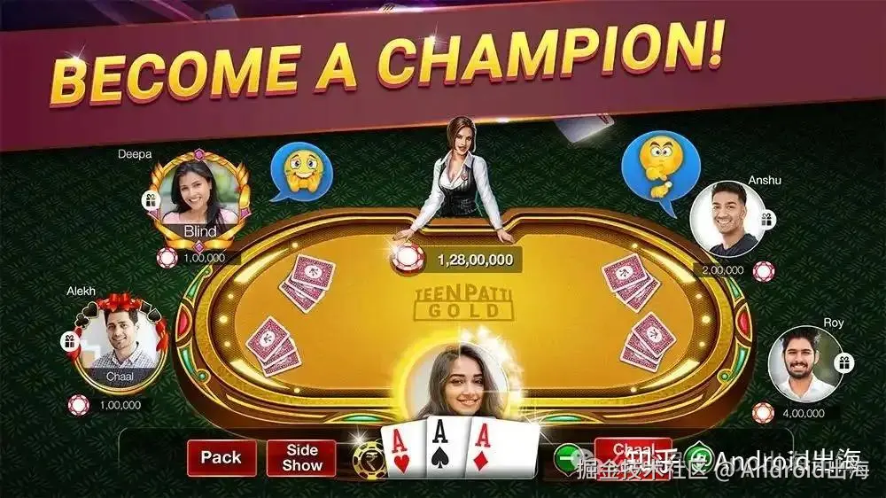 如下面拉米纸牌游戏“Teen Patti Gold”宣传图,该游戏在谷Google Play下载量超1亿。