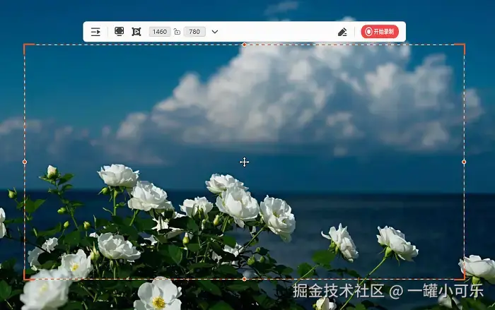 步骤2:直接拖动选区框框选出打算录制的区域,然后把麦克风和扬声器选项按需打开。要是想给视频加上水印,还能打开 “图片水印” 功能,自由设置水印图片等。设置好后,点击软件的 “录制” 按钮就可以开始录制视频了。
