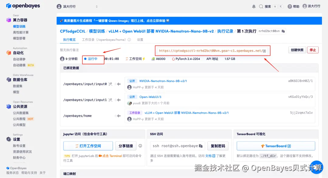 「vLLM + Open WebUI 部署 NVIDIA-Nemotron-Nano-9B-v2」现已上线至 OpenBayes 公共教程板块,快来体验与「小而精」的大语言模型对话吧!
