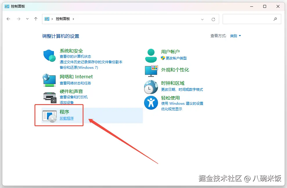 Step1、打开电脑“控制面板”,找到“卸载程序”