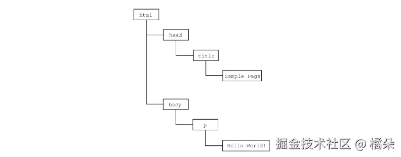 简单说,网页的html标签就是节点——<html>是树根,<head>、<body>是树干,<p>是树枝,标签里的文字就是树叶,层层嵌套,形成了DOM树。