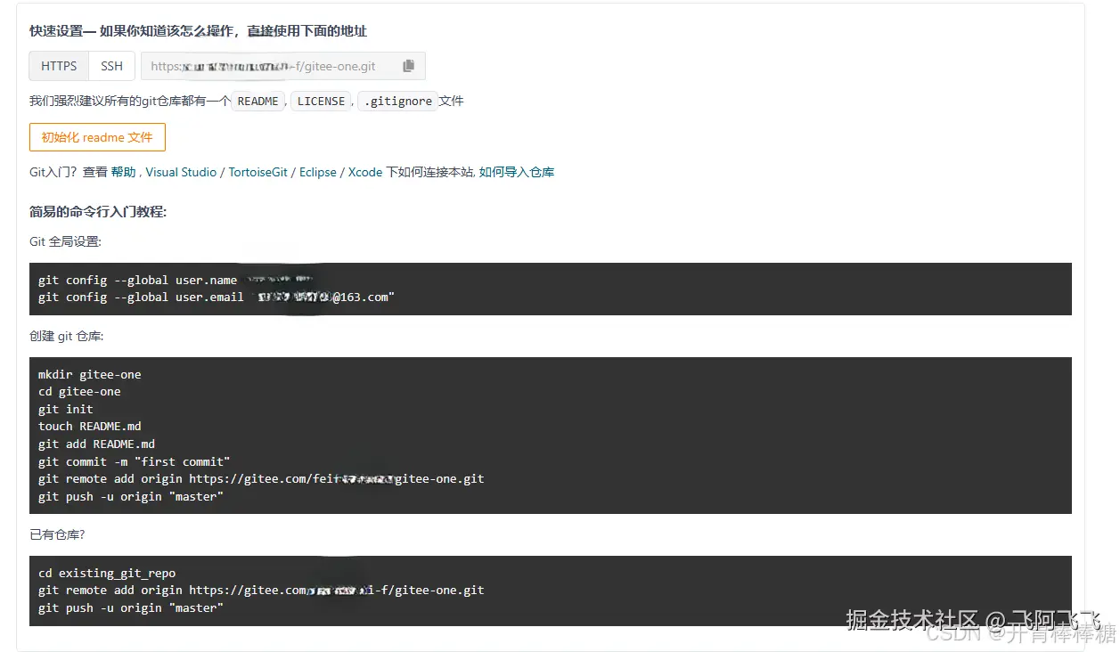 - 第一个是进行全局配置的,第一次使用gitee配置一下就好