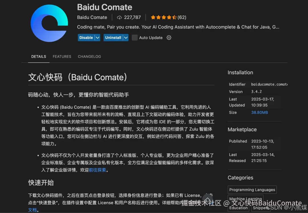 官网下载或者VS Code插件搜索“Comate”就能出来。(以下截图时间为博主撰文时间,各位看官注意去官网下载最新版)