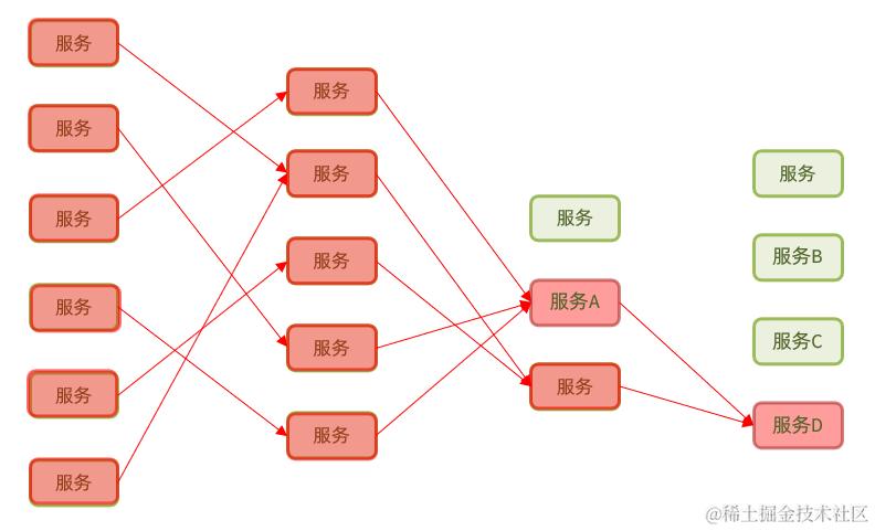 微服务中,服务间调用关系错综复杂,一个微服务往往依赖于多个其它微服务。