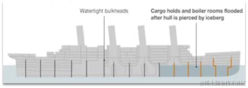 船舱都会被隔板分离为多个独立空间,当船体破损时,只会导致部分空间进入,将故障控制在一定范围内,避免整个船体都被淹没。
