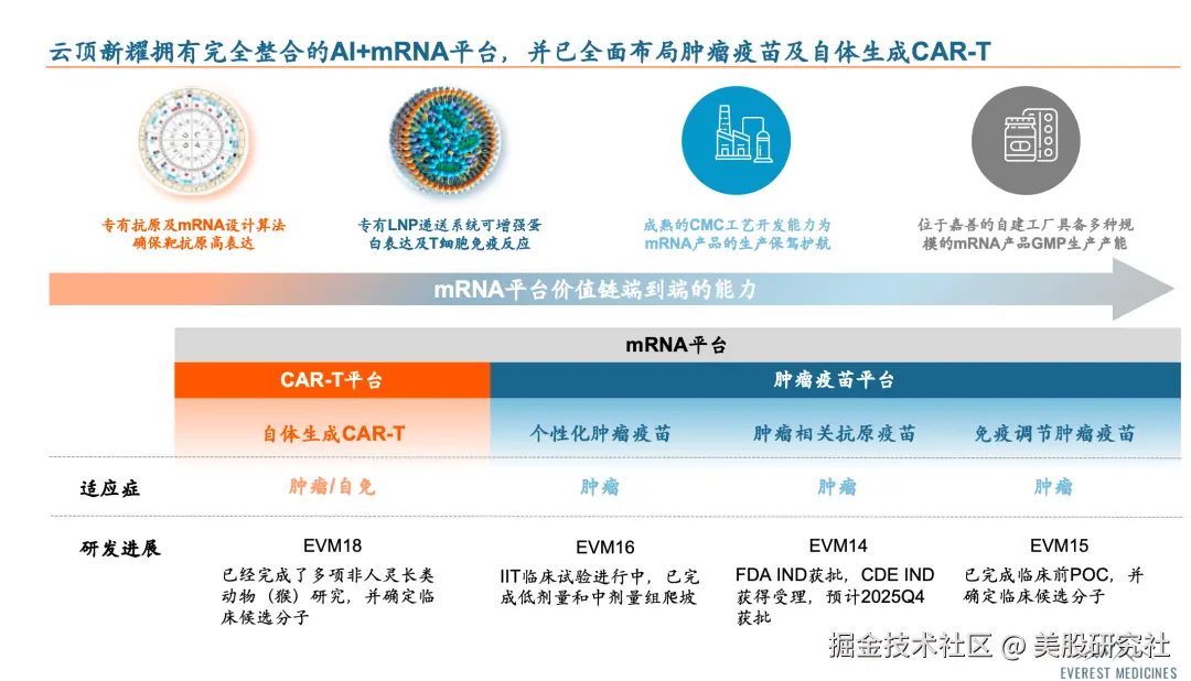 早在3年前,当行业还集中在预防性疫苗时,云顶新耀已前瞻性布局mRNA肿瘤治疗性疫苗和自体生成CAR-T领域。