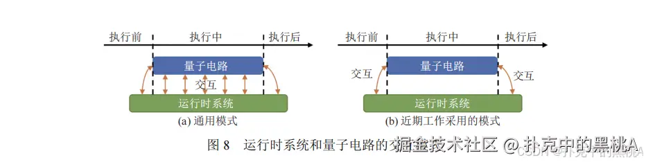 运行时系统的优势是 “能利用执行时信息”(如实时错误率),但受限于 NISQ 硬件的短相干时间,目前只能在 “执行前” 和 “执行后” 工作(图 8b)。未来随着硬件进步(更长相干时间、支持运行中测量),运行时系统可以实现 “闭环控制”(如根据中间结果调整后续操作),错误减缓能力会更强。