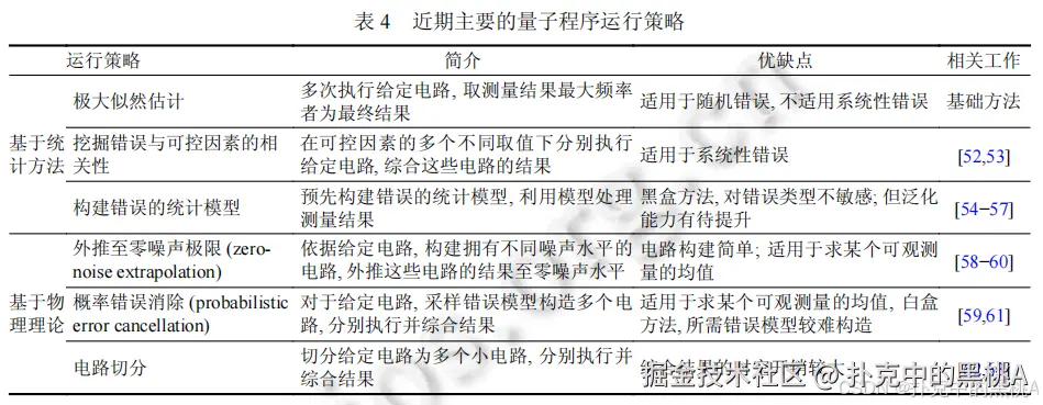 编译好的程序交给 “运行时系统” 执行,它的作用是 “在执行阶段进一步减缓错误”,就像考试时的 “检查步骤”,尽量让结果更可靠。论文 3 节把运行策略分为 “基于统计” 和 “基于物理理论” 两类(如表 4)。