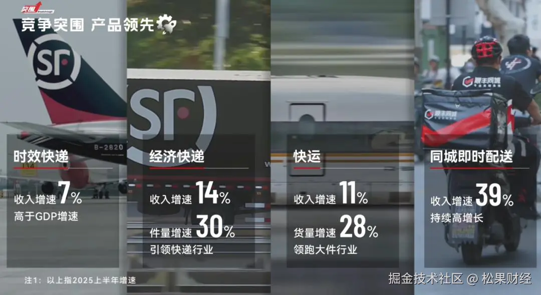 核心的速运物流业务,凭借高品质服务和对新能源汽车、高端制造等新兴产业的渗透,增速持续领跑行业,构成了稳固的“基本盘”。快运和同城即时配送等新业务,乘着消费利好和即时零售的东风,正成为拉动业绩的第二、第三增长极,展现出不小的潜力。