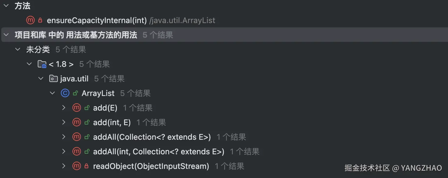 ArrayList中通过 trimToSize方法实现 List 的缩容控制,默认情况下不会自动缩容, 哪怕你remove() 很多元素。