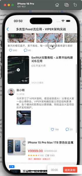 我们从VIPER的概念与落地难点出发,逐步展开:为什么需要面向协议的抽象与模板化设计,为什么要引入一些框架;随后讨论了依赖注入、响应式绑定、生命周期管理等核心要素,并在一个复杂页面案例中展示了VIPER在真实环境下如何协同工作。