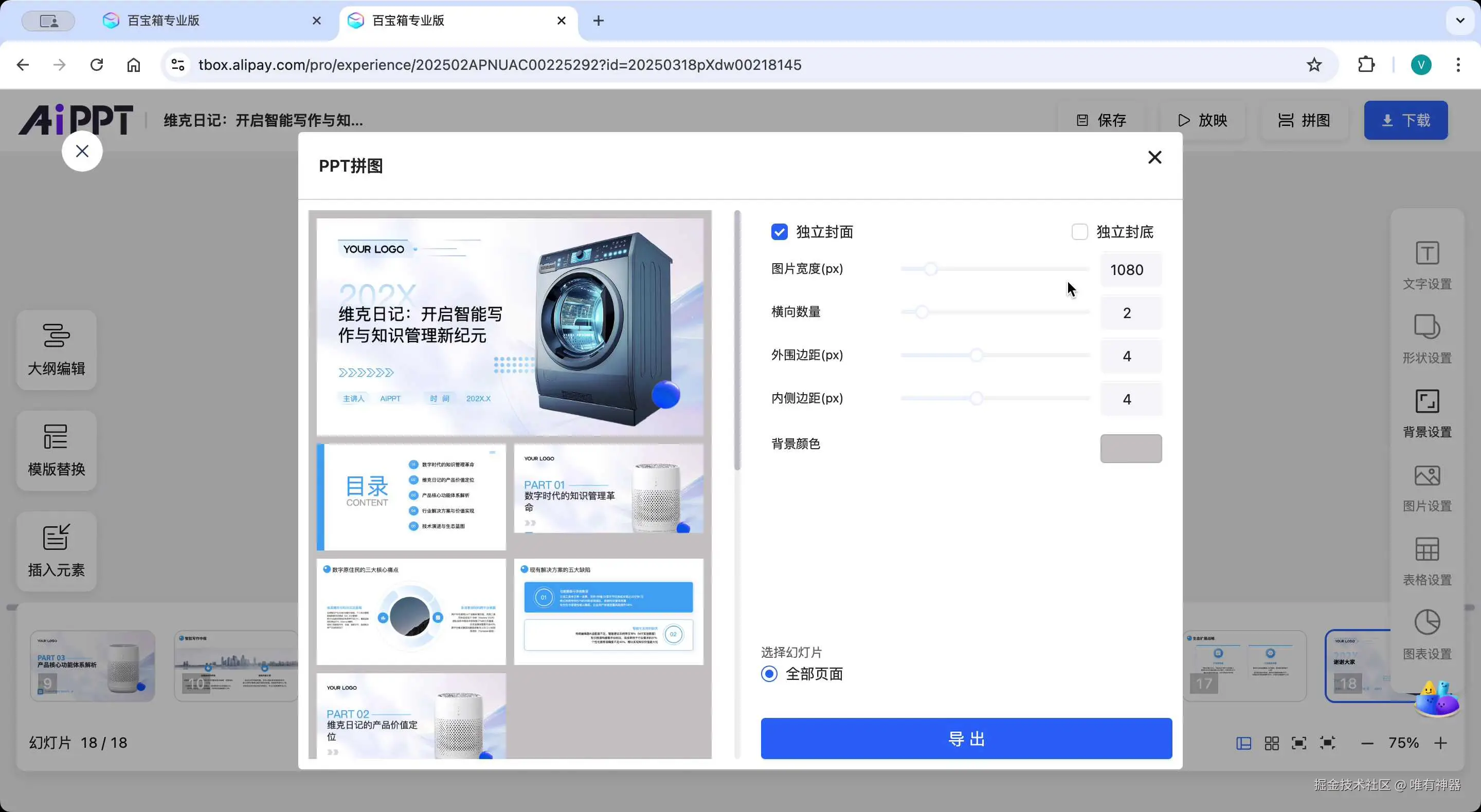 同时还提供拼图功能,可以将多页PPT合成一张长图,便于快速分享和浏览。
