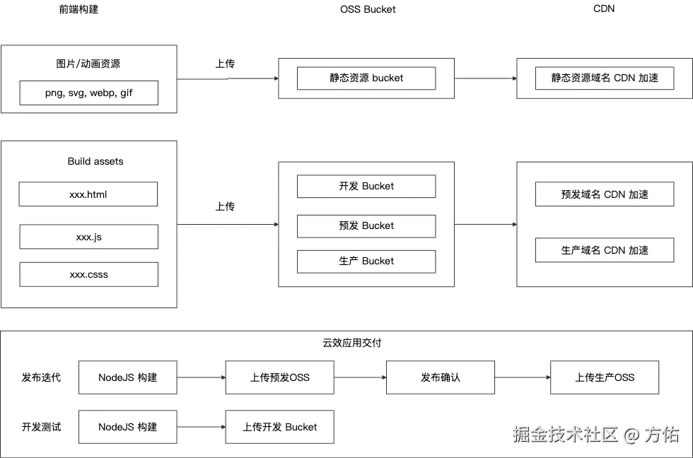 当时想要切换到CDN和OSS,核心诉求在于简化运维复杂度:项目未采用服务端渲染(SSR),无需服务器承载资源管理与服务运行,仅需完成前端构建后,将静态资源托管至 CDN 实现访问,其余环节(如缓存、加速、高可用)交由云服务处理。