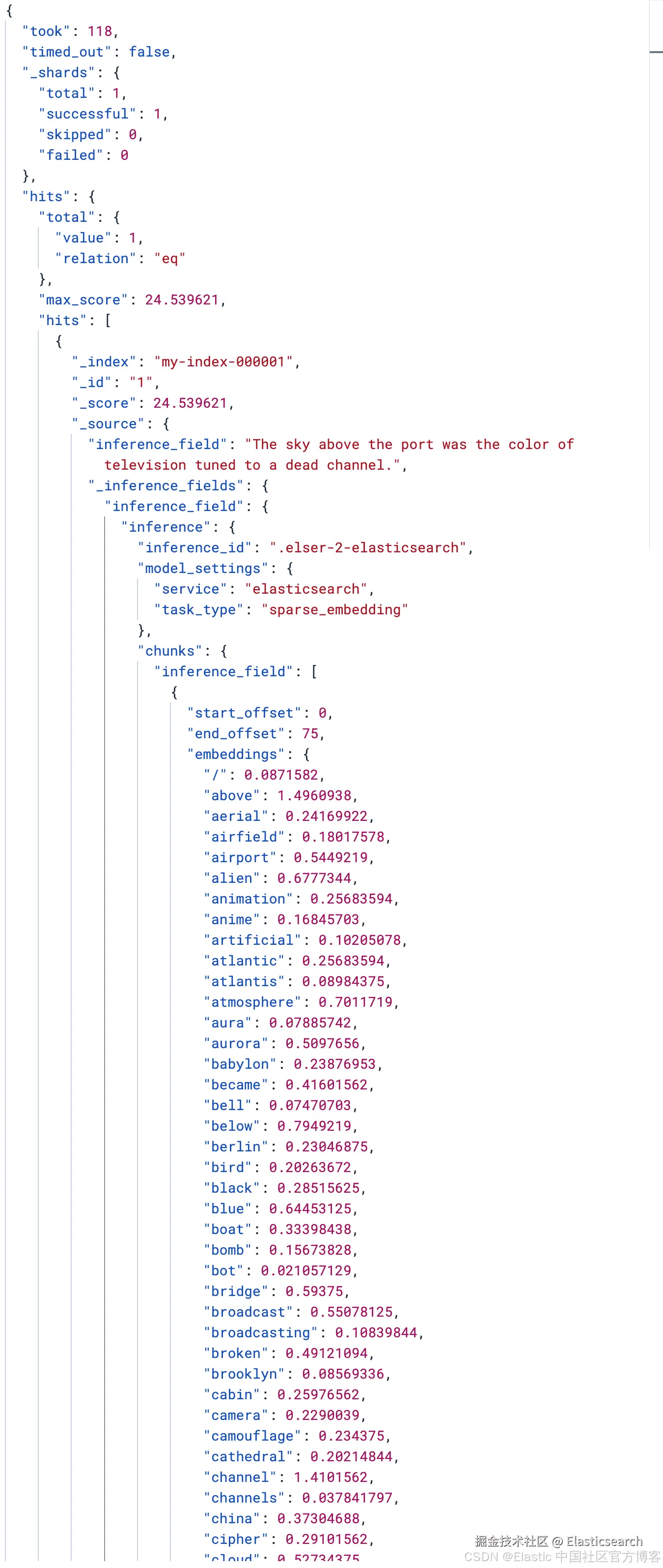 如果没有指定推理端点,inference_id 字段会默认使用 .elser-2-elasticsearch,这是 elasticsearch 服务预配置的端点。