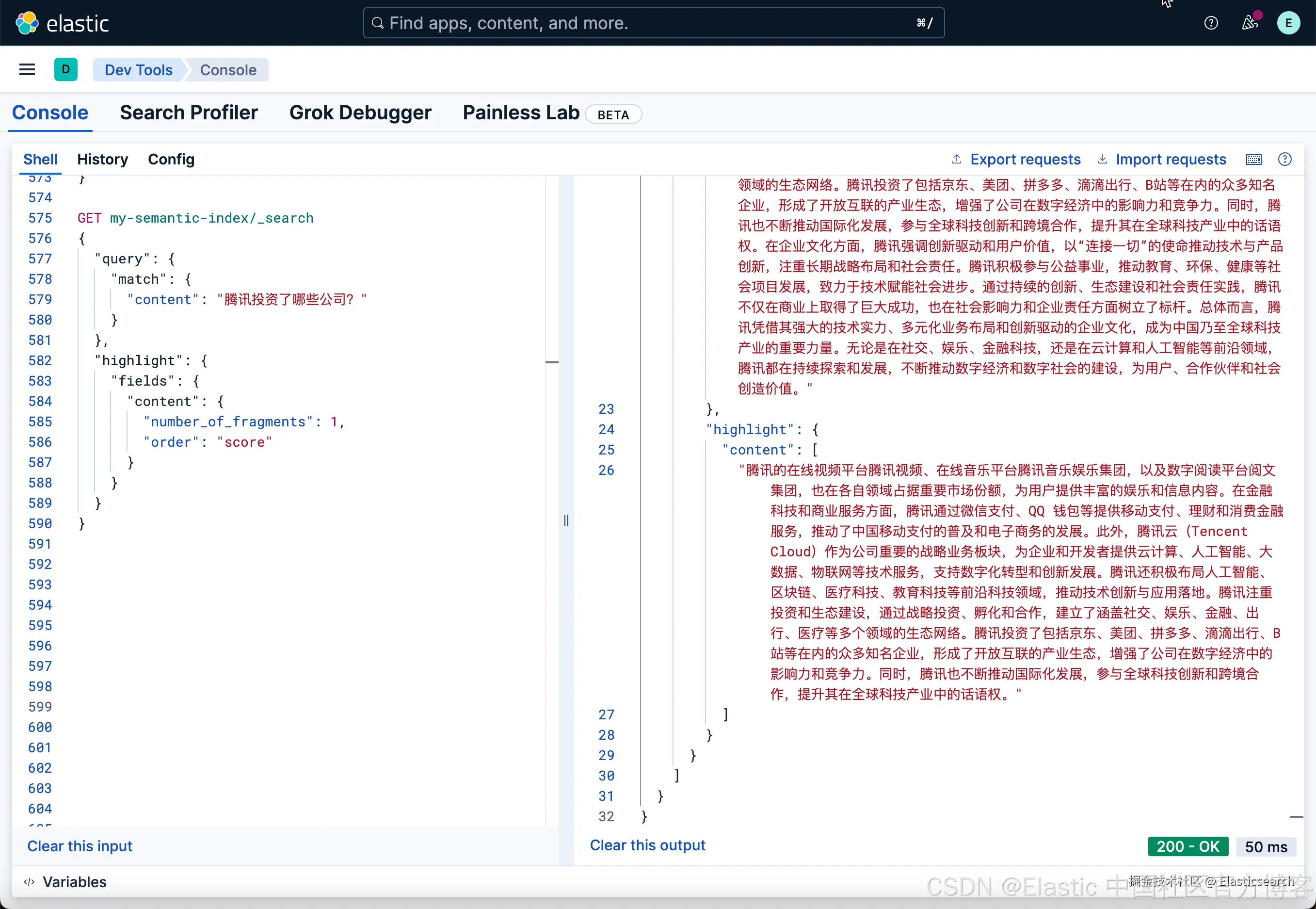 高亮支持 semantic_text 以外的字段。然而,如果你想将高亮限制为 semantic highlighter,并在字段类型不是 semantic_text 时不返回任何片段,可以在查询中显式强制使用 semantic highlighter: