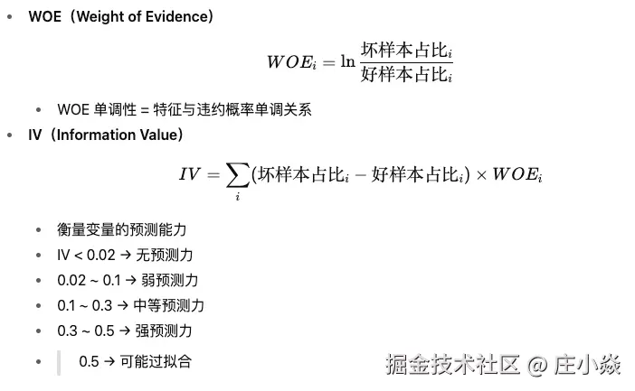 - 稳定性 → 衡量模型能否长期适用(PSI、OOT)
