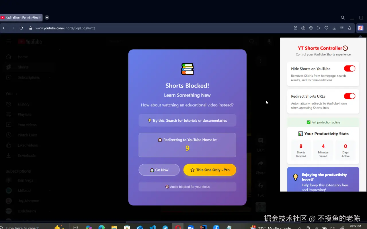 YouTube Shorts Controller是一款免费的Chrome扩展,可以隐藏YouTube Shorts视频、重定向Shorts链接,并跟踪用户阻止的Shorts数量和节省的时间,帮助提高学习效率。
