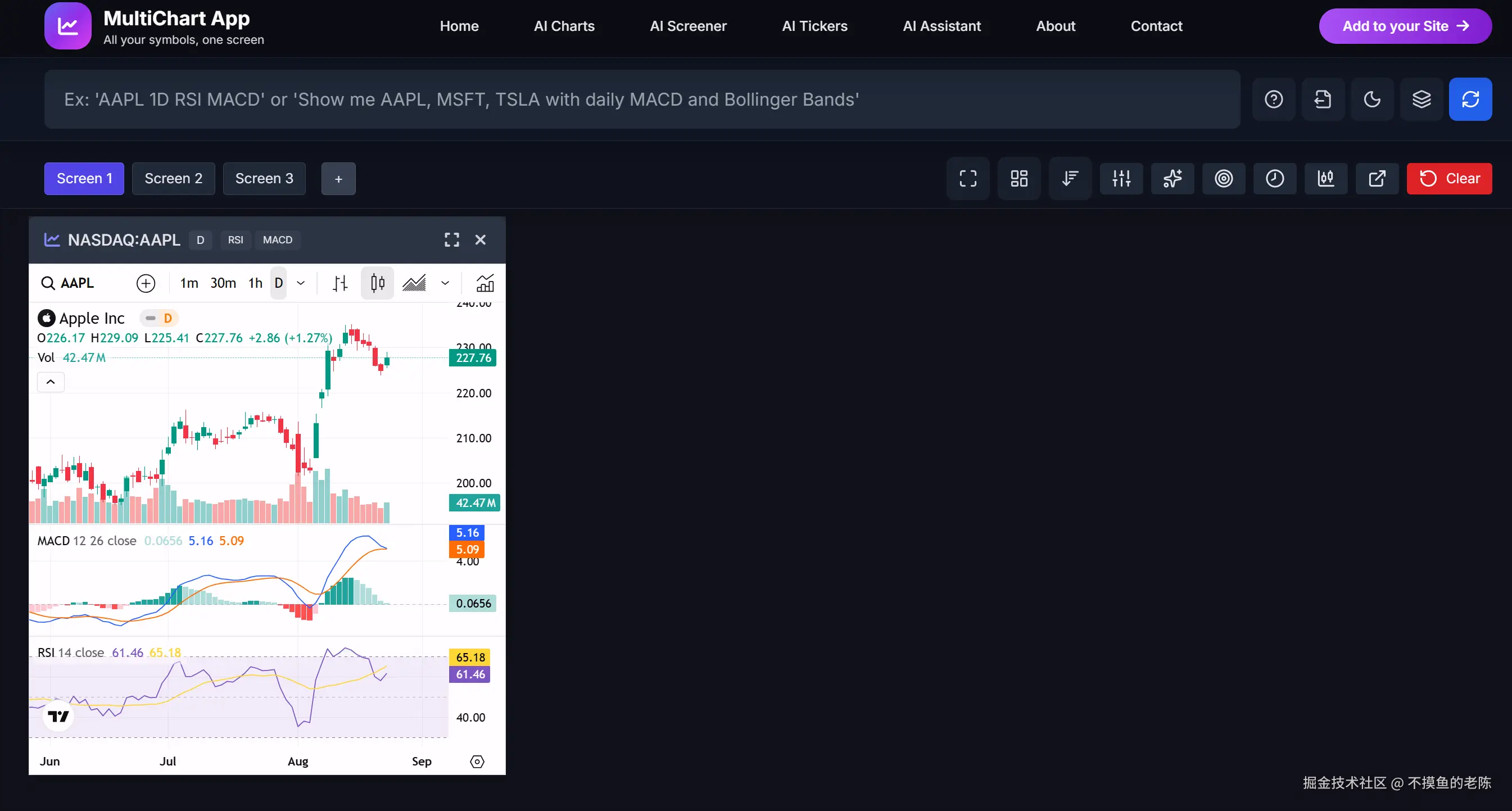 MultiChart 是一款免费的 AI 驱动的多图表生成器,用户可以通过自然语言轻松创建自定义交易图表仪表板,帮助发现市场趋势和相关性。
