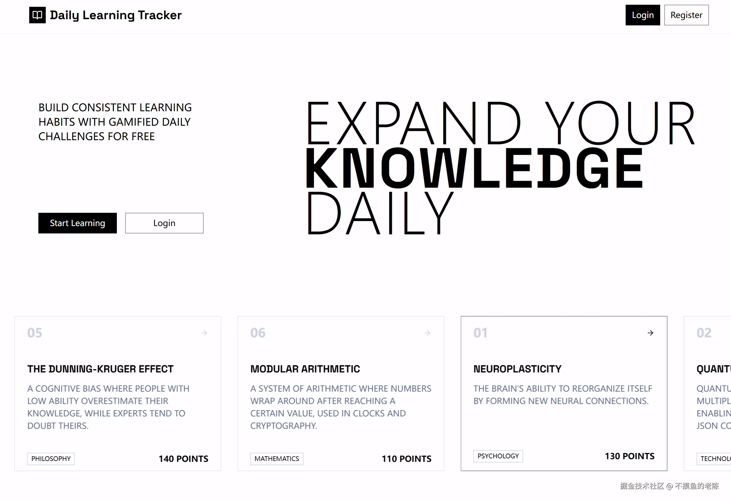 Daily Learning Tracker是一款学习软件,通过游戏化的方式帮助用户在多个领域获取知识,用户可完成提示、记录笔记并参与排行榜。