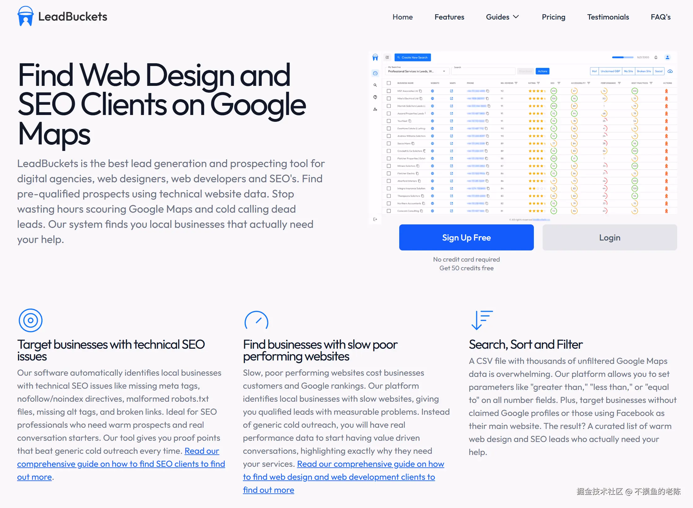 LeadBuckets是一款网站分析工具,通过Google地图抓取商家信息,并使用Lighthouse报告分析其网站和SEO问题。