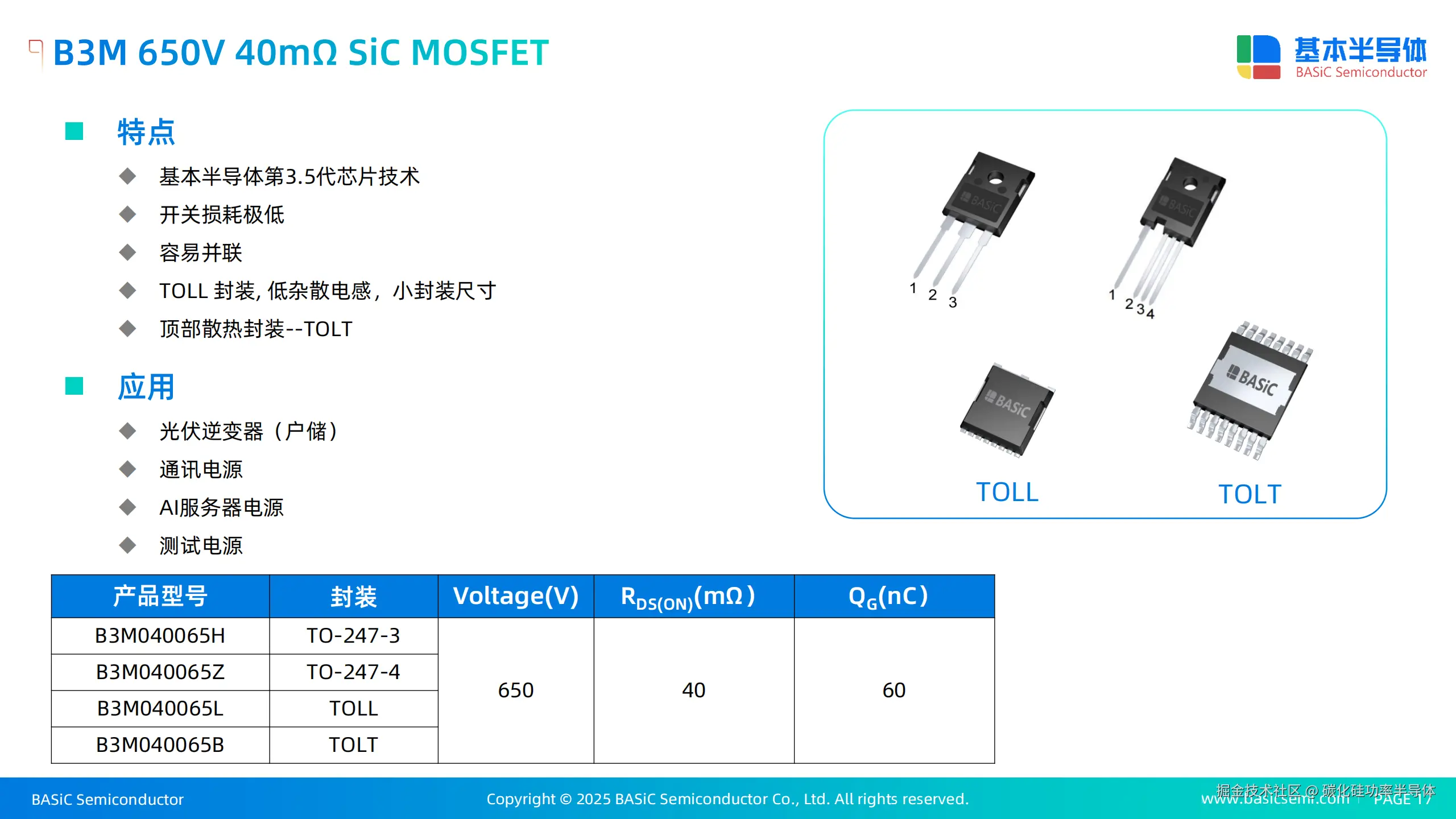 其次,SiC MOSFET的导通电阻(RDS(ON))极低,并且其随温度的上升率远低于硅器件 。这意味着SiC器件即使在高温工作条件下也能保持较低的传导损耗,这对于整个负载范围内的效率提升至关重要 。