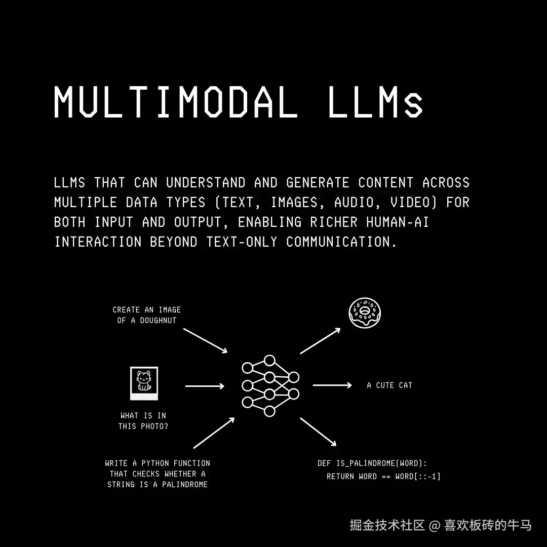 现代 LLM 是多模式的。这意味着它们可以使用不同模式(音频、图像和视频)的数据作为输入和输出。