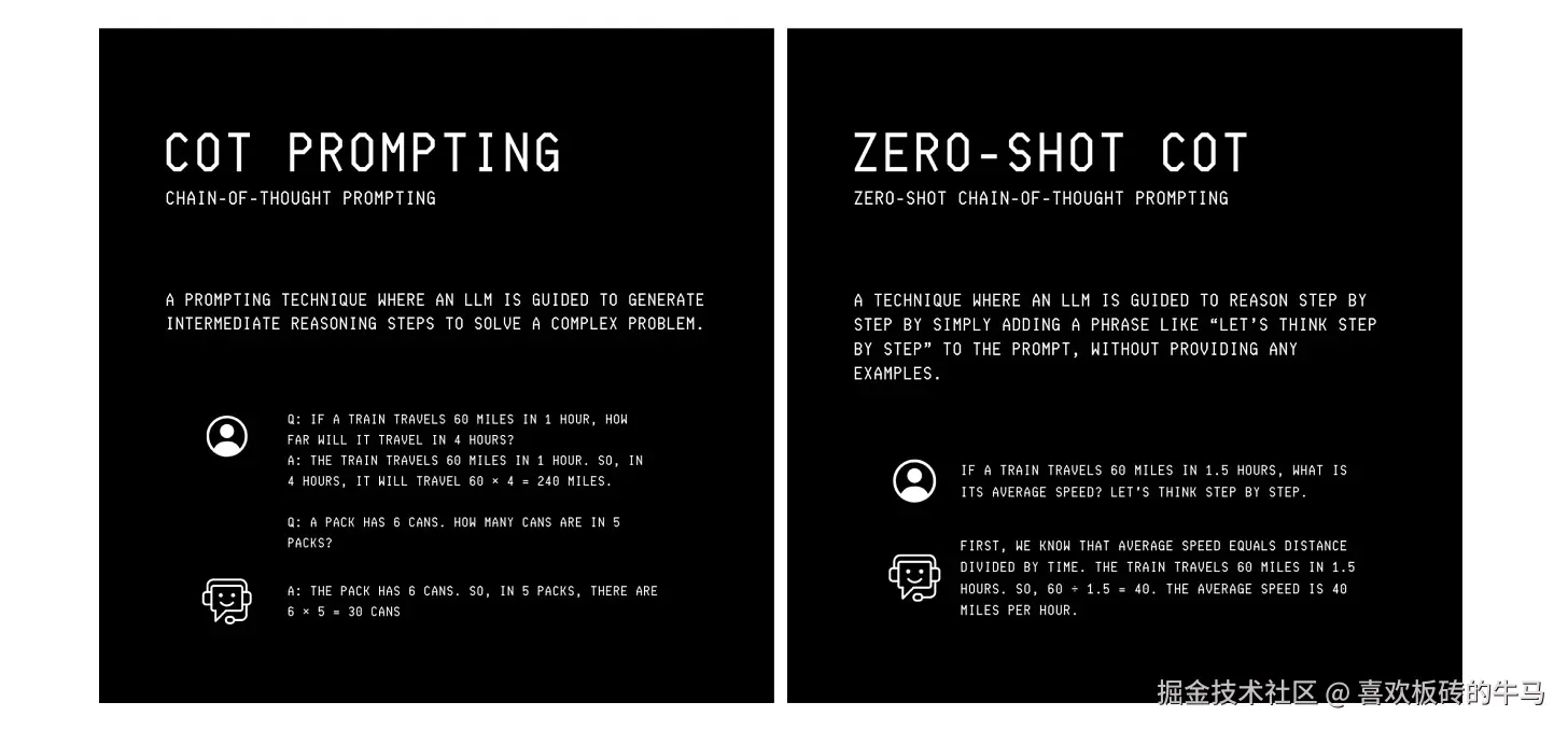 除此之外,还引入了许多专门的提示技巧,其中之一就是思维链(CoT)提示法。