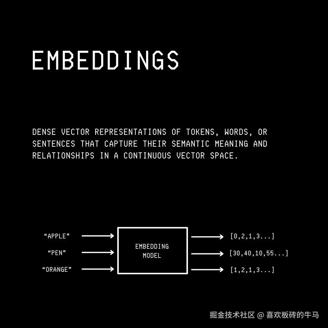 然后,将获得的标记编码成数学形式,即嵌入(Embeddings)。