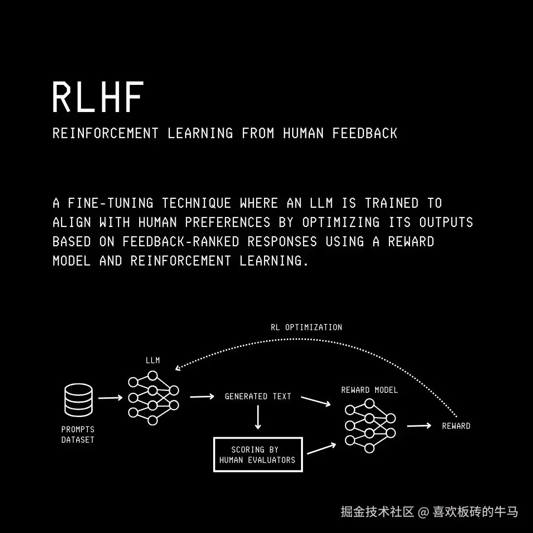 RLHF 通过使用人类判断的数据集,使 LLM 与人类的价值观、偏好和期望保持一致,从而引导 LLM 做出被认为更好的回应。